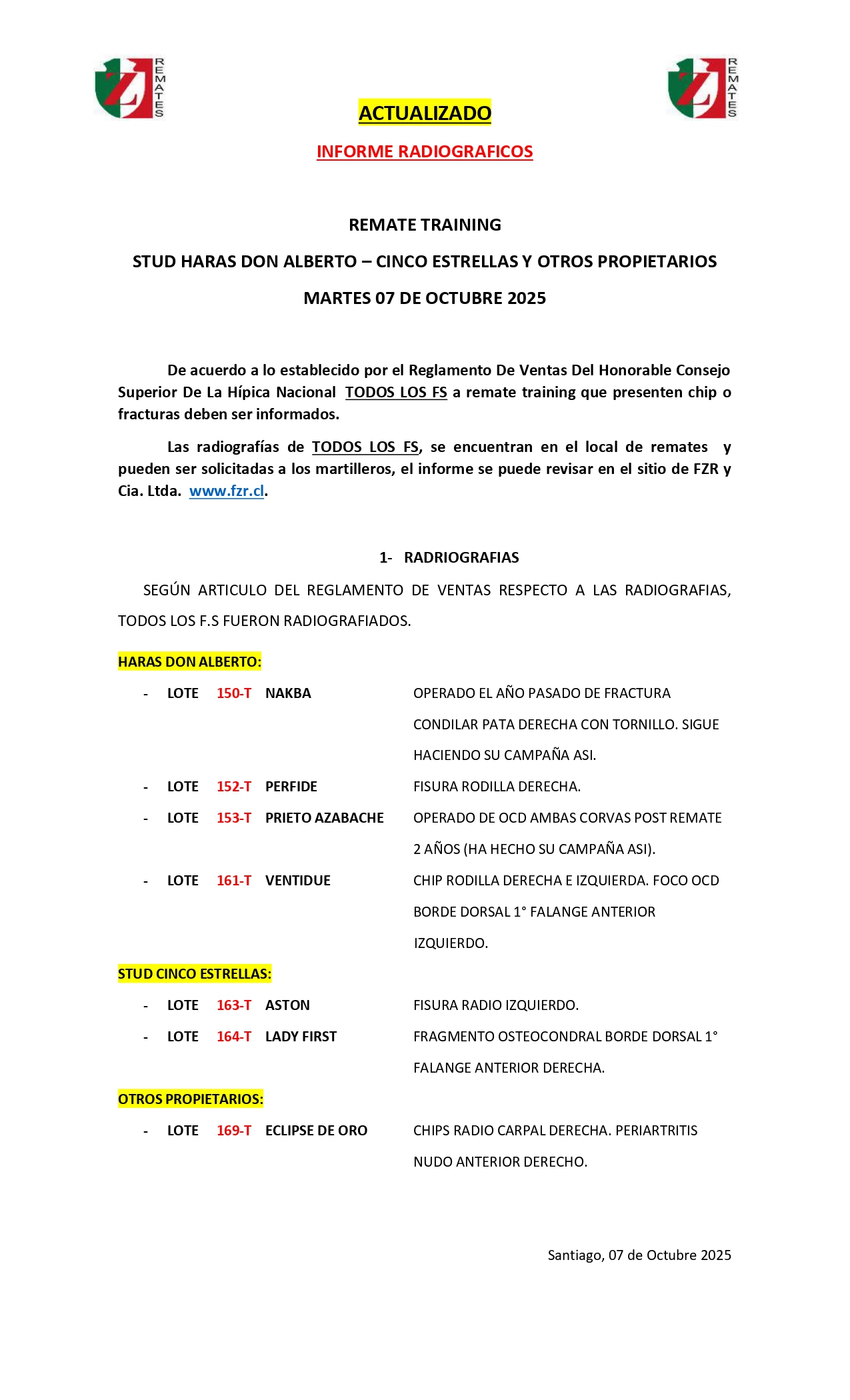 Interesados en RX Solicitar a:FERNANDO ZAÑARTU R. Correo Fernando@fzr.cl +569 9238 8985