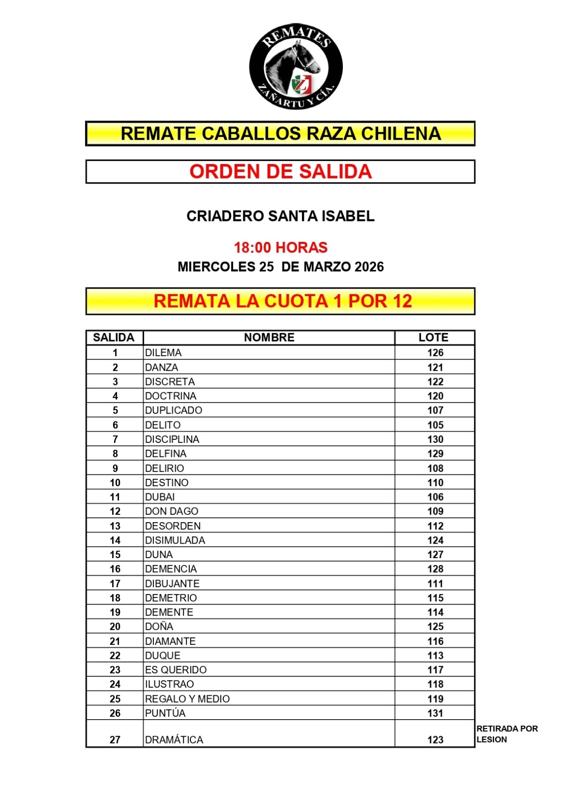 ORDEN DE SALIDA VER TRANSMISION DEL REMATE Catálogo (Descarga pdf) Bases de Compra